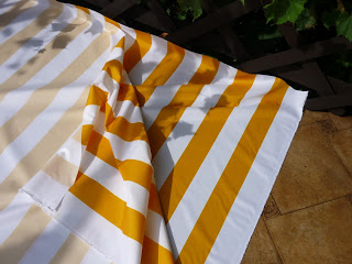 Dwie części materiału po 4 metry każda, zszyłam wzdłuż dłuższego boku. Powstał prostokąt o wymiarach 3,2m X 4m.