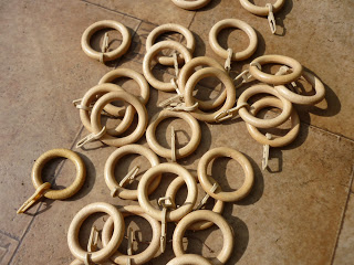 - drewniane kółka do karniszy, lub metalowe kółka o takiej średnicy, aby mogły się swobodnie przesuwać po rurkach