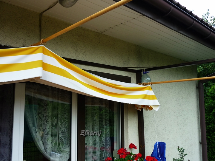 Ważne jest żeby odstępy pomiędzy belkami pergoli były równe. Wtedy zwinięta pergotenda nie zwisa (tak jak u mnie niestety)