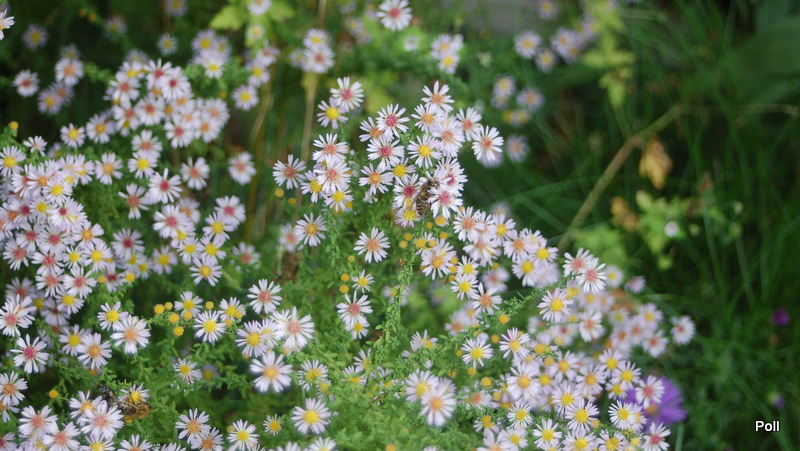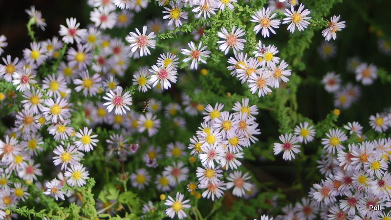 Aster ericoides 'Lovely' rośnie w moim ogrodzie na w pełni słonecznym stanowisku. Zawsze, gdy kwitnie, przypomina różowawą chmurę, bo malutkich kwiatków jest całe mnóstwo.
