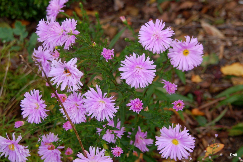 Gdy rozwija kwiaty, sprawia wrażenie krzaczka obsypanego jasnoróżowymi pomponikami. W miarę ich rozwijania, ukazuje się zółty środek, ale kwiaty pozostają na tyle masywne i ciężkie, że łodygi czasem potrafią się pokładac- zwłaszcza po deszczu. Podobno w ostatniej fazie kwitnienia staje się takim przeciętnym astrem, co widac na fotce w pierwszym poście.