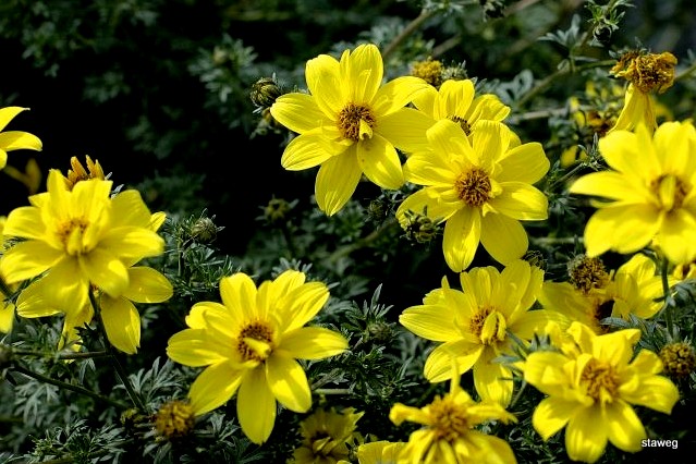 Bidens najlepiej rośnie i najobficiej kwitnie w pełnym słońcu. Znakomicie znosi letnie upały i ostre słońce, ale nie wolno zapominać o systematycznym podlewaniu.