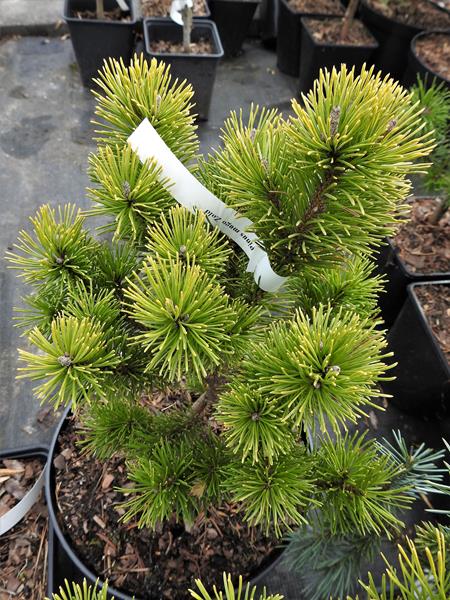 Miała być Pinus parviflora 'Ogon Janome' (sosna drobnokwiatowa 'Ogon Janome') ale jest chyba densiflora gęstokwiatowa „Oculus-draconis” albo parviflora ‘Shirome Janome’.