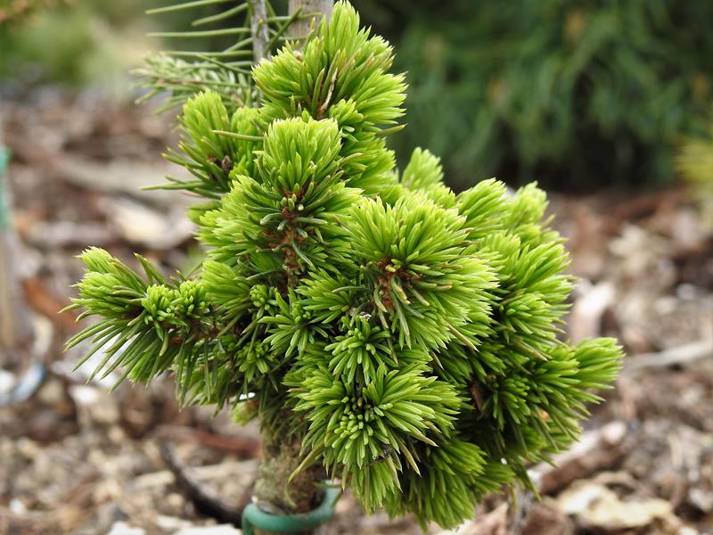 Miniaturka wśród świerów białych Picea glauca 'Conica sport'