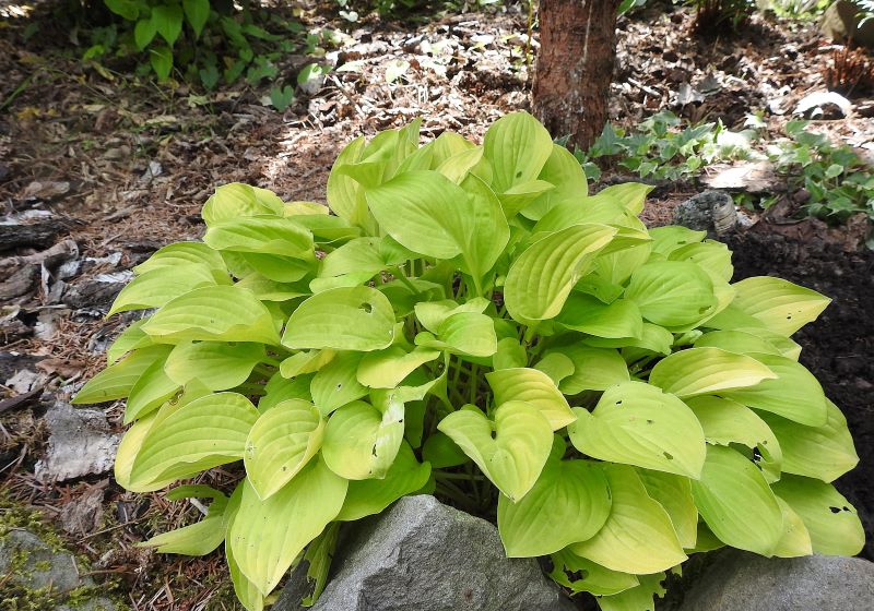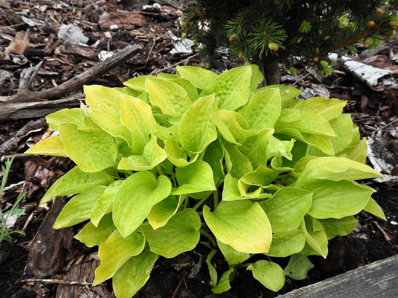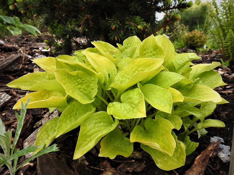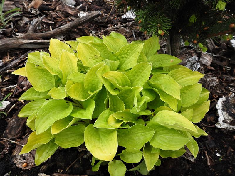 Małych rozmiarów, hosta, której liście podobno wiosną mają mieć czerwone końcówki.