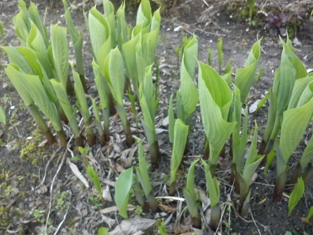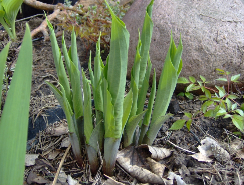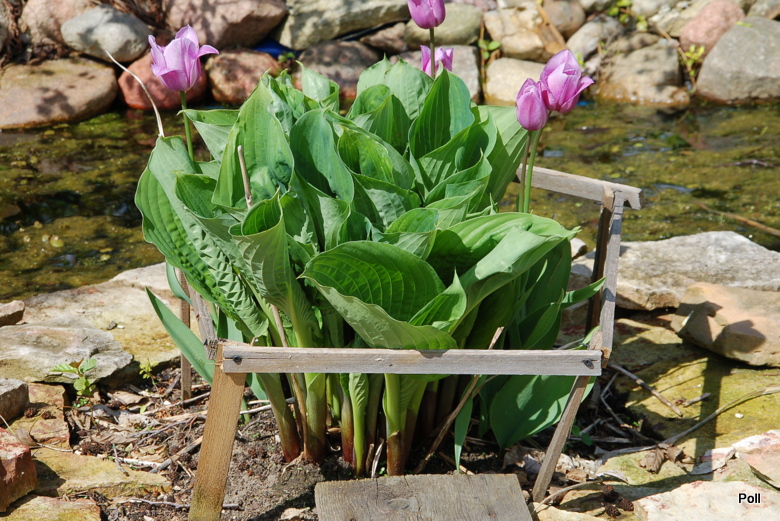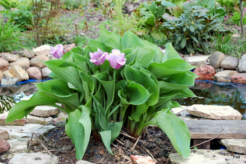 W tym roku, kły pojawiły się później, niż u innych host, ponieważ woda oczka chłodzi wysepkę. Gdy inne hosty cierpiały od przymrozków, ona była bezpieczna.