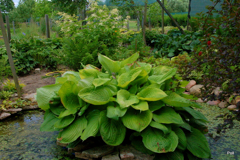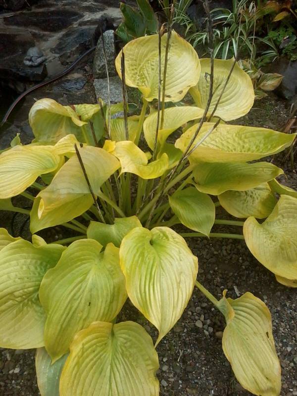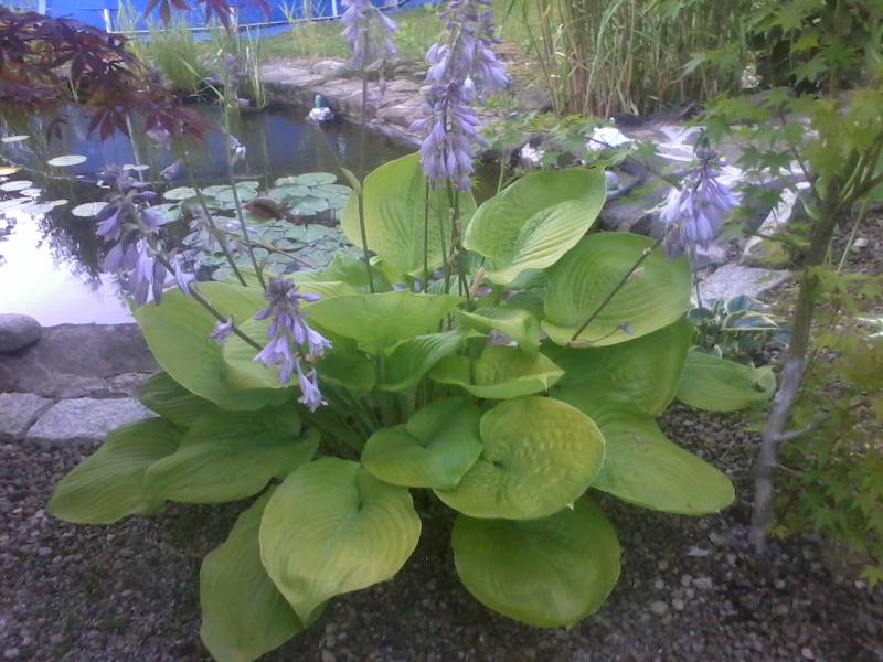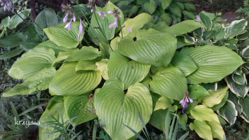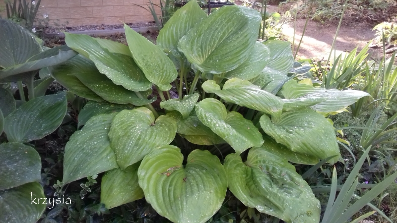 U mnie zapowiadano -0C, więc niczym nie zabezpieczałam mojej olbrzymki. Miałam nadzieje, że przy tej temperaturze, ochroni ją woda oczka. Niestety, było -7C i teraz moja Sum and Substance nie nadaje się do pokazywania w całości. :blink: Nie zawieszałam nad nią cieniówki i nie zasilałam jej zbyt mocno w tym sezonie. W maju dostała nieco gnojówki z chwastów i to wszystko. Mimo, ze sporo pada, systematycznie ją podlewam. Trzy dni temu dostała dodatkowy oprysk przeciwgrzybowy preparatem Sigmum. Bliżej jesieni spryskam ją jeszcze raz (jak wszystkie moje hosty) środkiem Score. Aktualnie bardzo obficie kwitnie.