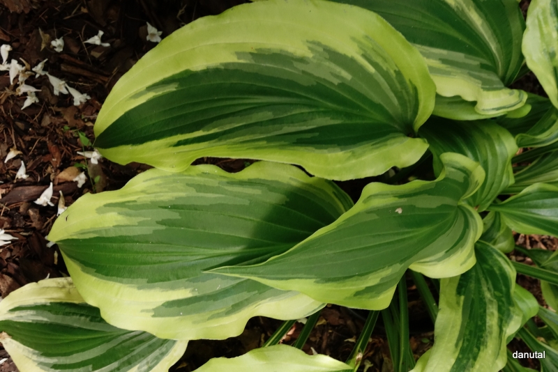 Tymczasem u mnie, jest to jedna z nielicznych host, która dzielnie opiera się prosionkom i ślimakom. Gdy inne są już o tej porze prawie całe w dziurach, ona ma tylko nieliczne dziurki :)