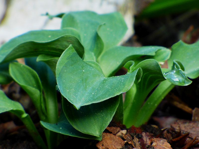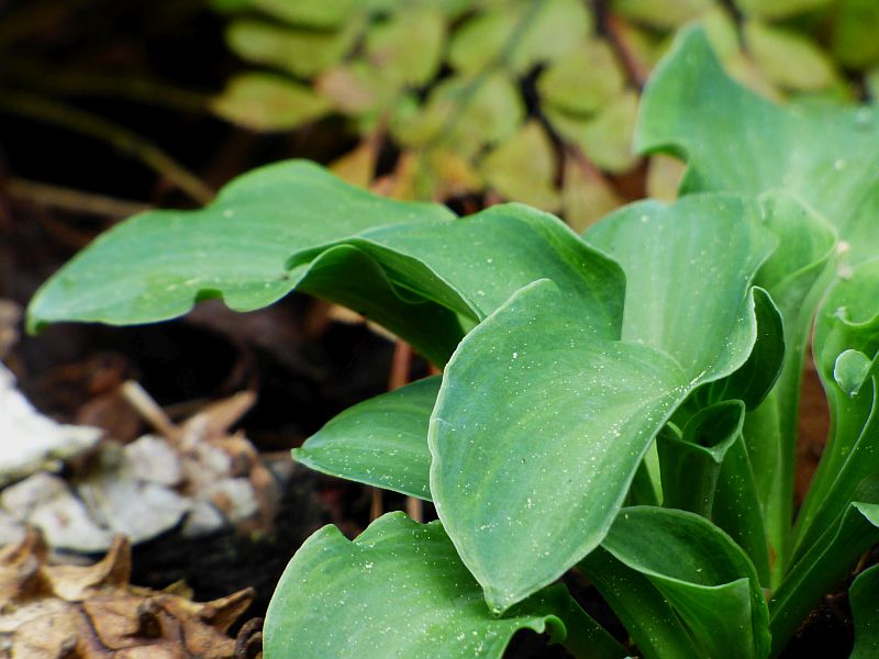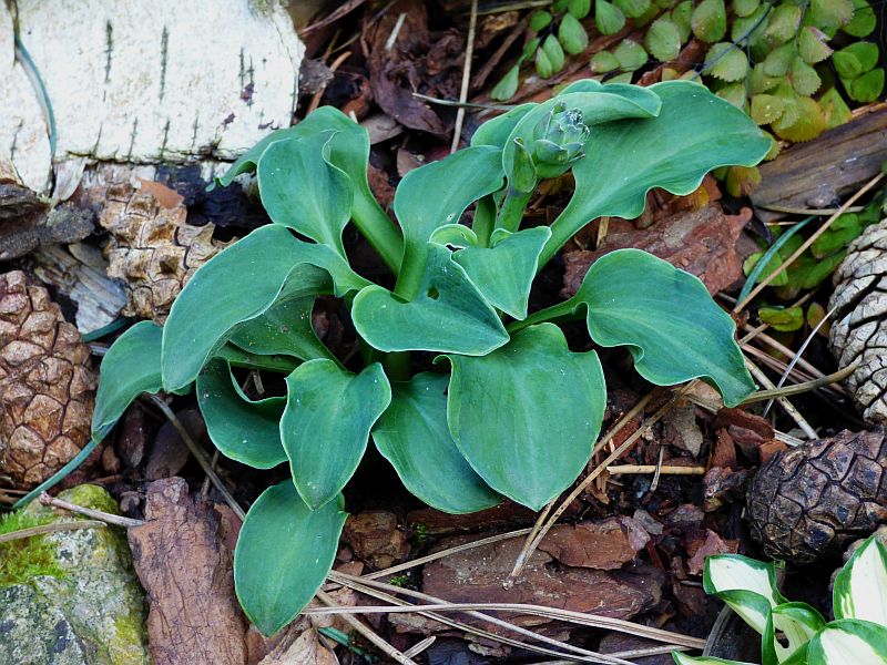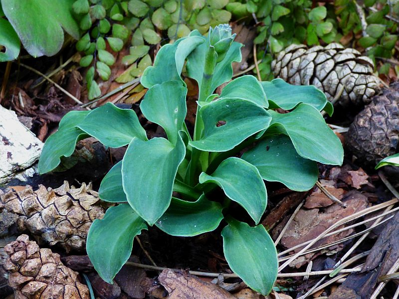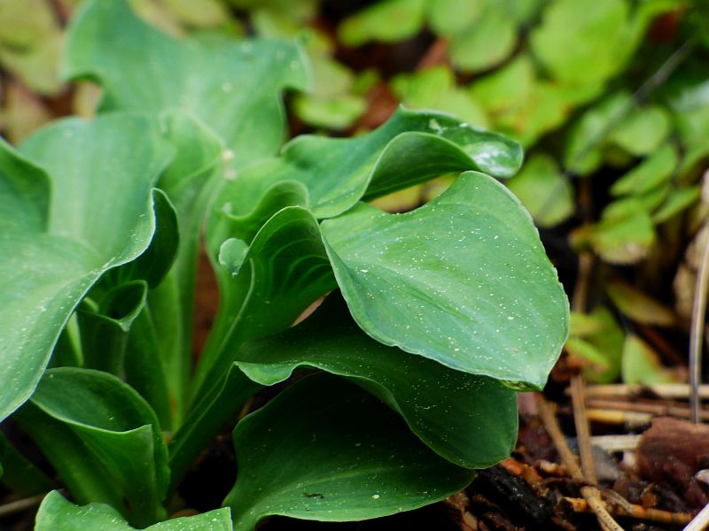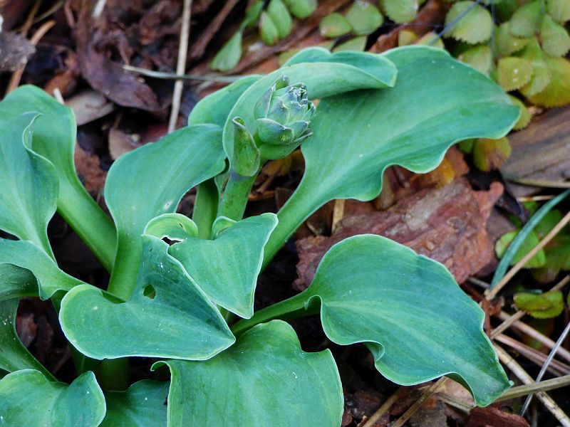 Liście: okrągłe, twarde... niebieskawo zielone, otoczone delikatnie pofalowanym, szaro zielonym marginesem