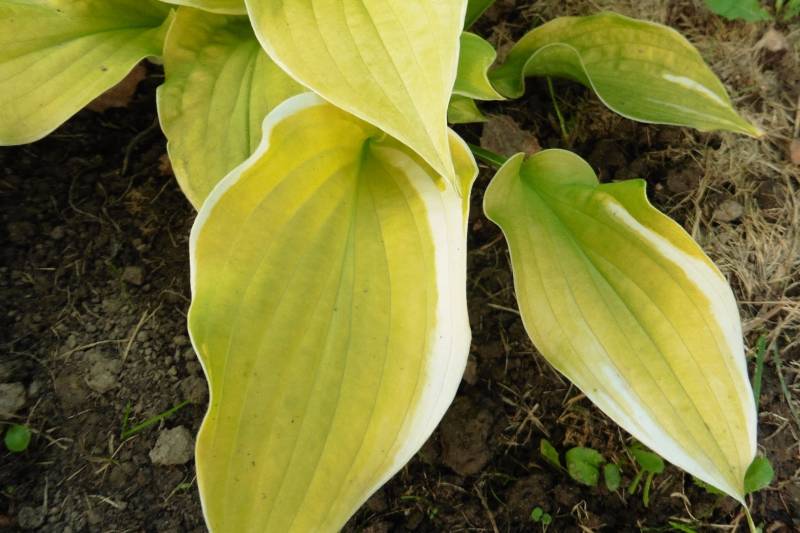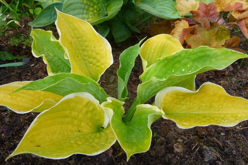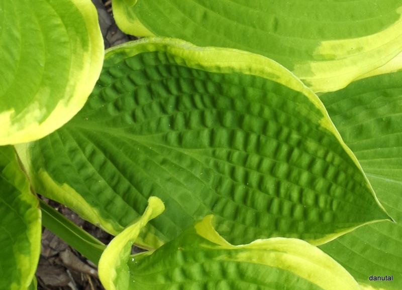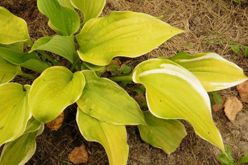 Krzyżówka host 'William Lachman' x 'Golden Waffles' (Kevin Vaughn 1982r.)