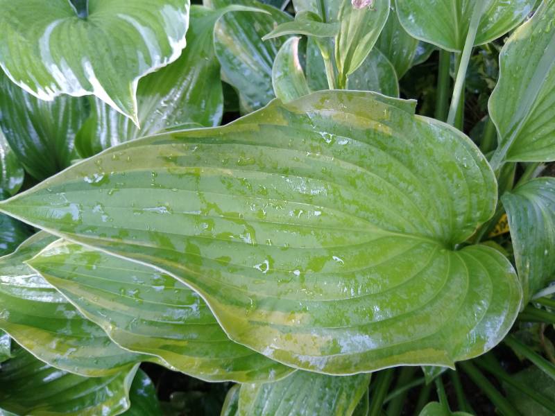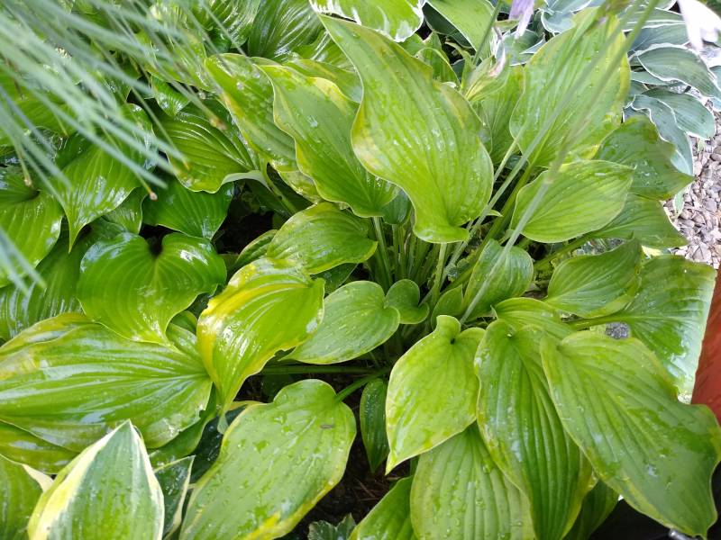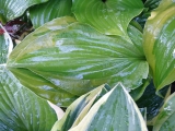 Inne nazwy H.Fortunei Stenantha Variegated'. 'H. Fortunei Stenantha Aureomarginata'. ' H.Mackwood', i bardzo podobna H. Brass Horn'