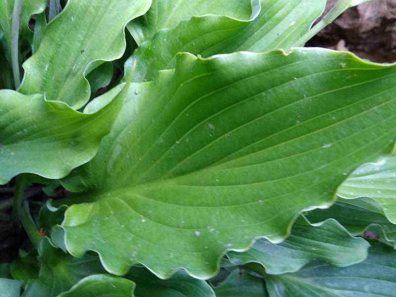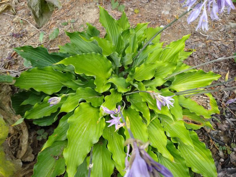 Wielkość M ( 40-45cm ) Liście - długie , spiczaste , zielone z pofalowanym brzegiem Kwiaty - lawendowe Wzrost - średni do szybkiego Stanowisko - od cienia do słońca