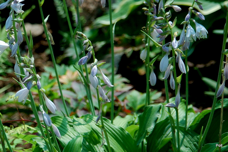 Rozmiar: S/M wysokość 30-35cm. Liście: długie, lancetowate, szaro-zielone z mocno pofalowanym brzegiem Kwiaty: lawendowe na purpurowych u podstawy ogonkach Zalecane stanowisko: od słońca do cienia