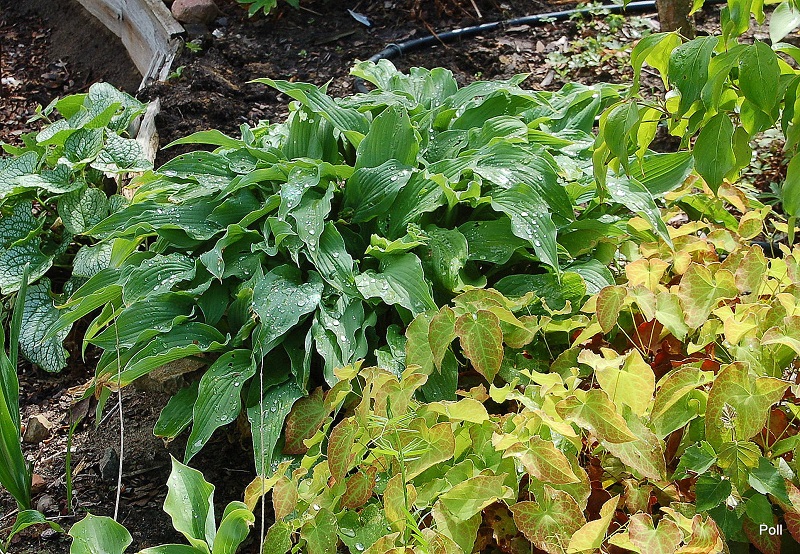 Moja hosta Sahara Nights, to roślina czteroletnia, raz dzielona. Obecnie rośnie na Sławojkowie, na dobrze zasilanym w wodę miejscu.