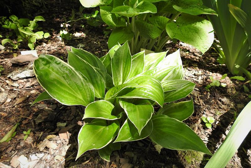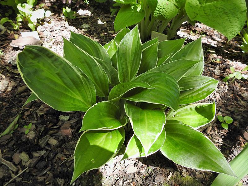 Wielkość: średnia, u mnie nie przekroczyła 30 cm. wysokości. Liście: błyszczące, zielone z wąziutką białą obwódką, delikatnie pofalowane. Kwiaty: w kolorze lawendy, VIII-IX. Stanowisko: półcieniste, cieniste.