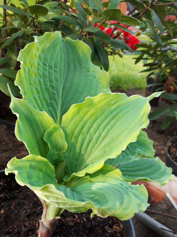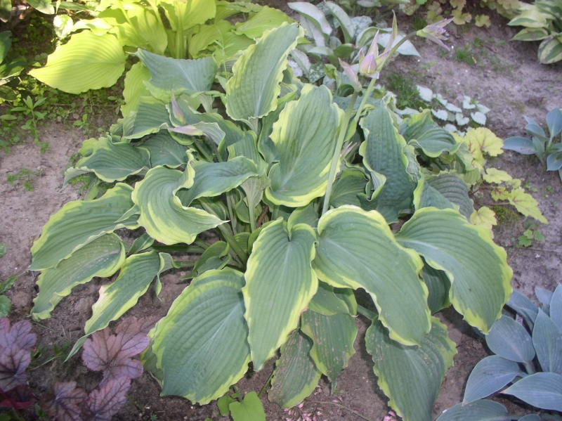 Hosta Spartakus, 6-ty sezon w moim ogrodzie, ale od 3 lat wymrażana niemal do cna przez przymrozki. W tym roku będzie lepiej :silly:
