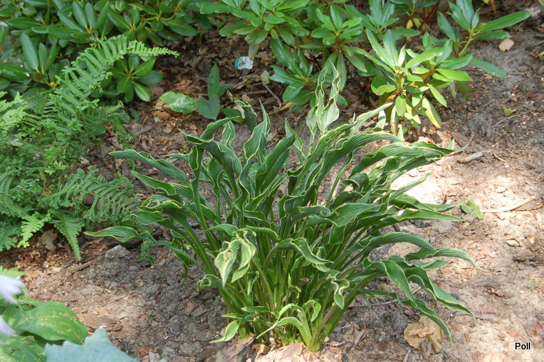 Rośnie czwarty sezon na niezmienionym stanowisku, kępa już się dość zagęściła, kłów ma kilkanaście. Bardzo ciekawa hosta, bardzo ją lubię, przełamuje przestrzeń rosnąc wśród innych host.
