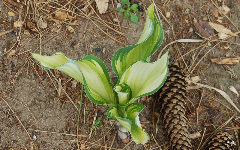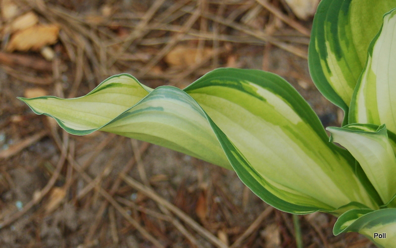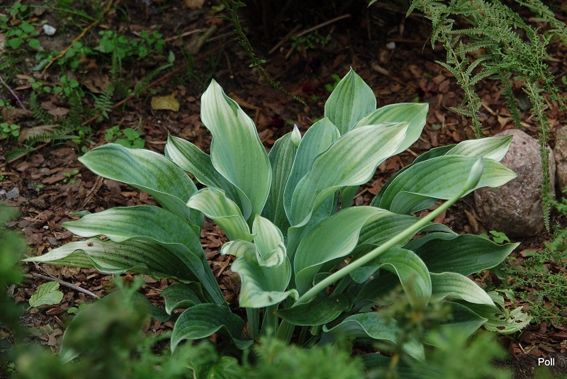 Rozmiar SM wysokość 30cm, rozpiętość 60 cm Liście :podłużne (18x11 cm), pofalowane, dobrej substancji; wiosną białe z zielonym marginesem, w trakcie sezonu staja się cieniowane, niebieskawe Kwiaty: bladolawendowe, dzwonkowate, na długich łodygach (VII/VIII) Zalecane stanowisko: półcieniste, żyzne