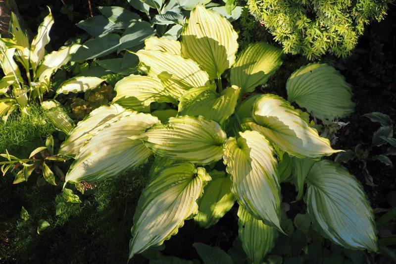 A pod koniec maja 'First Dance' na tyle uległa dominacji rosnących obok wyższych host, że do końca sezonu pozostała niewidoczna dla oka