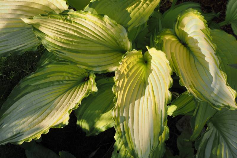 Liście: jasnożółte a z czasem zieleniejące (odcień chartreuse) centrum z falującym, ciemnozielonym marginesem