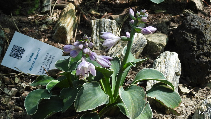 Rozmiar S wysokość 15- 20 cm Liście: małe, okrągławe, w typie innych 'myszek', niebieskawozielone, z cienkim jasnym marginesem Kwiaty : lawendowe (VII) Zalecane stanowisko: od półcienia