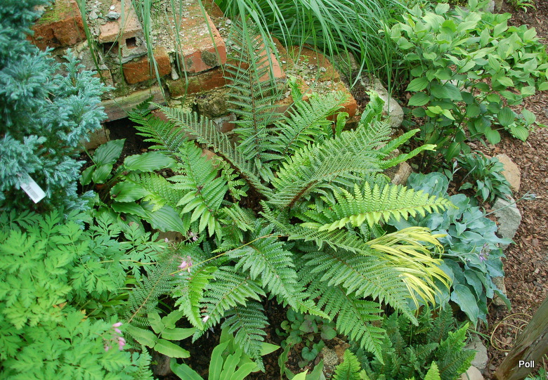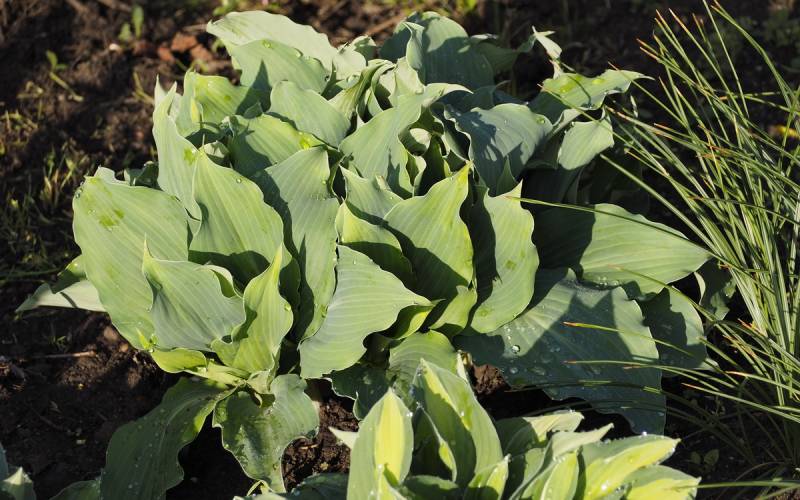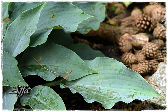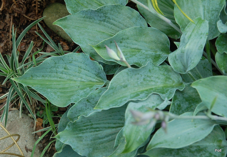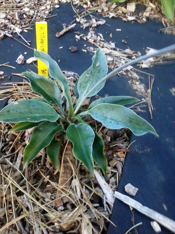 Hosta Titanium, nie osiągając olbrzymich rozmiarów na swoim starym miejscu, nieco się gubiła, więc została przeniesiona na początku tego sezonu na nieco bardziej eksponowane miejsce. Dodatkowo, swoim niebieskim kolorem miała ożywić trochę zbyt zielone nasadzenia na stoku paprociowym. Dobrze się na tym miejscu zaaklimatyzowała i choć jej wzrost nie jest duży, jest dobrze widoczna dzięki sporej szerokości kępy.