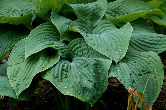 - tworzy olbrzymie kępy dużych wzniesionych liści o ciemnej barwie