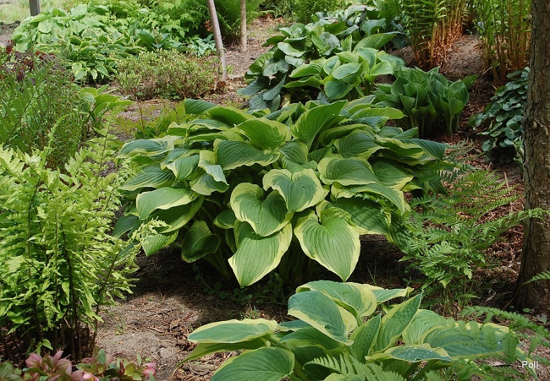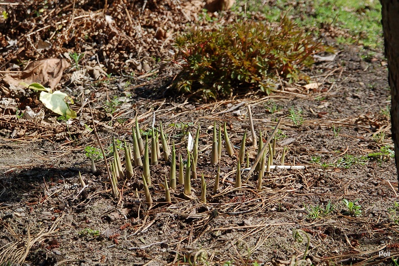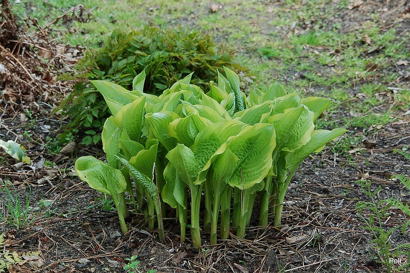 Zdjęcie Poll z kwietnia i maja 2016 r. Roślina rozpoczynająca 4-ty (?)sezon, kupiona jako 1 kłowa sadzonka z in vitro (Fransen). Jej tempo przyrastania wydaje mi się niezłe - od 1 do 14 kłów w tym roku.