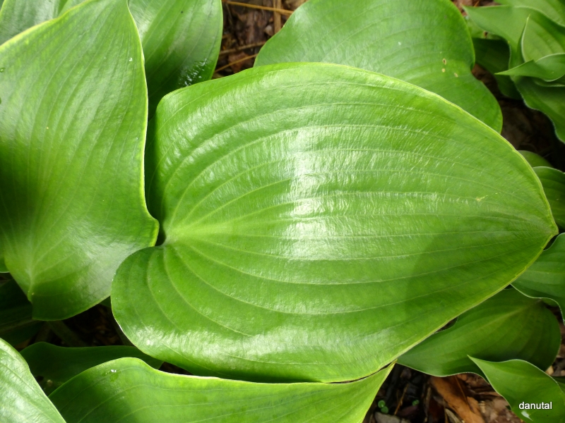 Hosta Urajiro Hachijo i wspomniane lśnienie, nawet pod cieniówką 75%