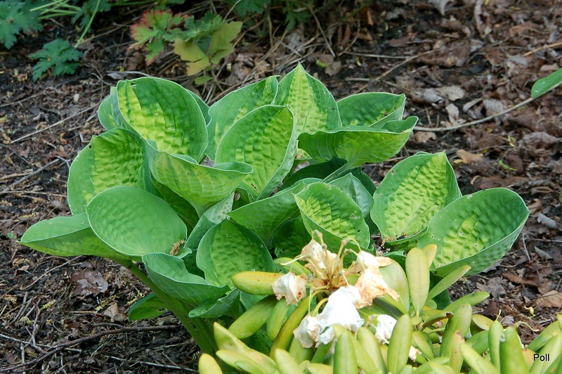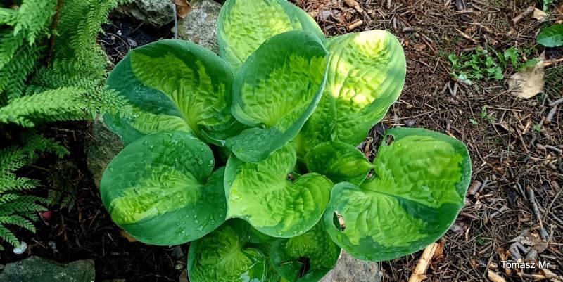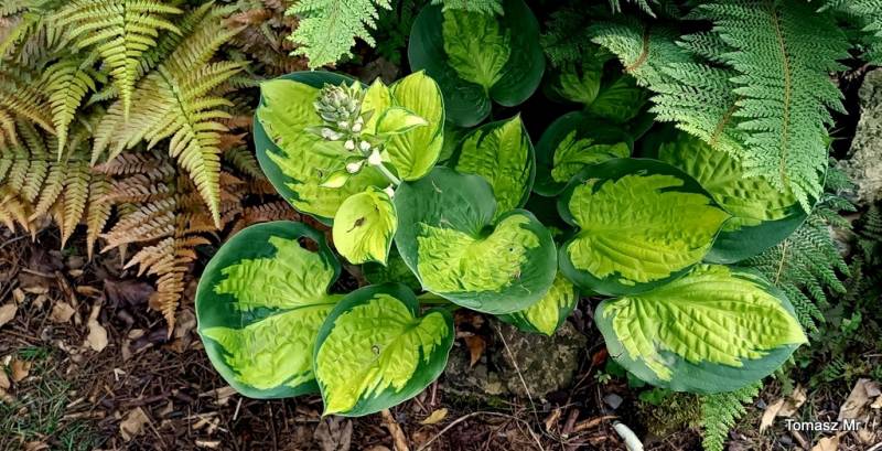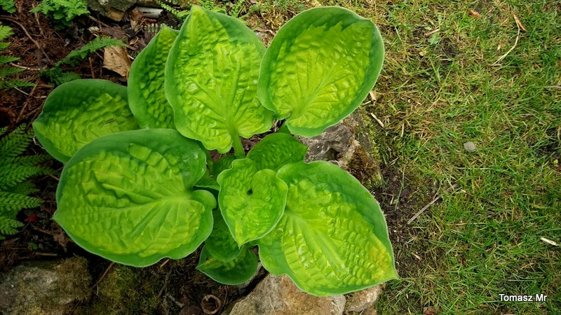 Moja Hosta ' Pocketful of Sunshine' rośnie na stanowisku jasnym,ale bez słońca i nie wybarwia się jak na zdjęciach Poli. Wolno przyrasta, ale godna uwagi...i miejsca w ogrodzie