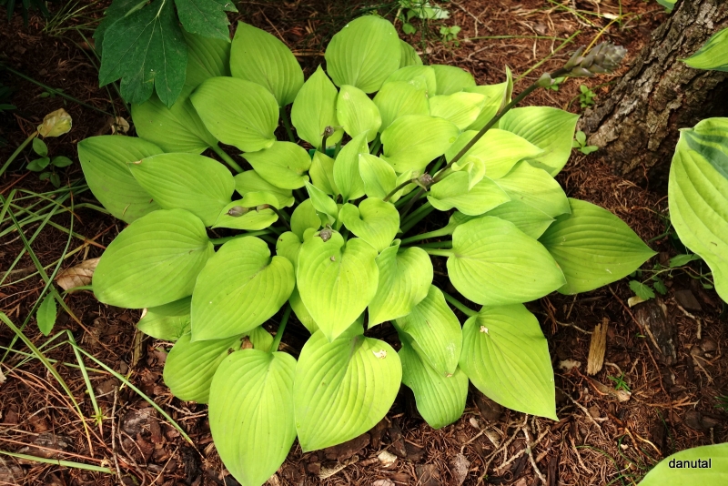 W moim ogrodzie 5-ty sezon, dzielona. Rośnie u stóp wielkiej hosty Willy Nilly i z jednej strony na tym korzysta ( więcej jest przy okazji podlewana), z drugiej, opadające liście sąsiadki zasłaniają ją całkowicie w sezonie ( obrywam te najbardziej agresywne ) . Wymagałaby przesadzenia. Hosta bezproblemowa, nigdy nie przemarzła, ale - jak napisała Danusia - należałoby zapewnić jej dostęp do rozproszonych promieni słonecznych.