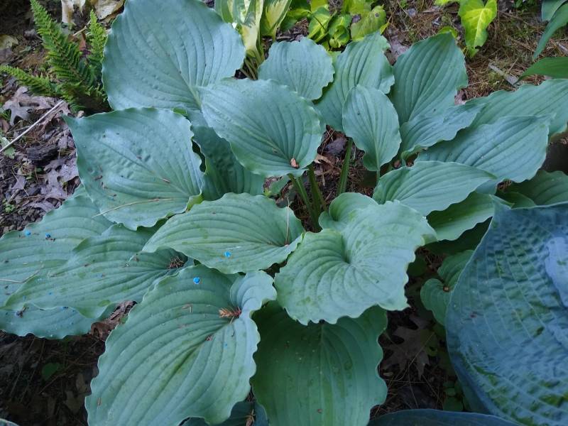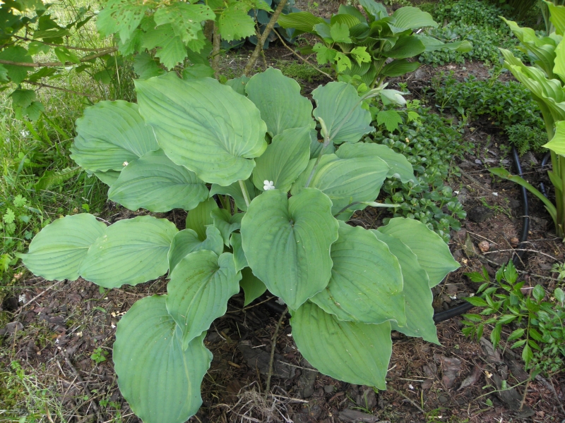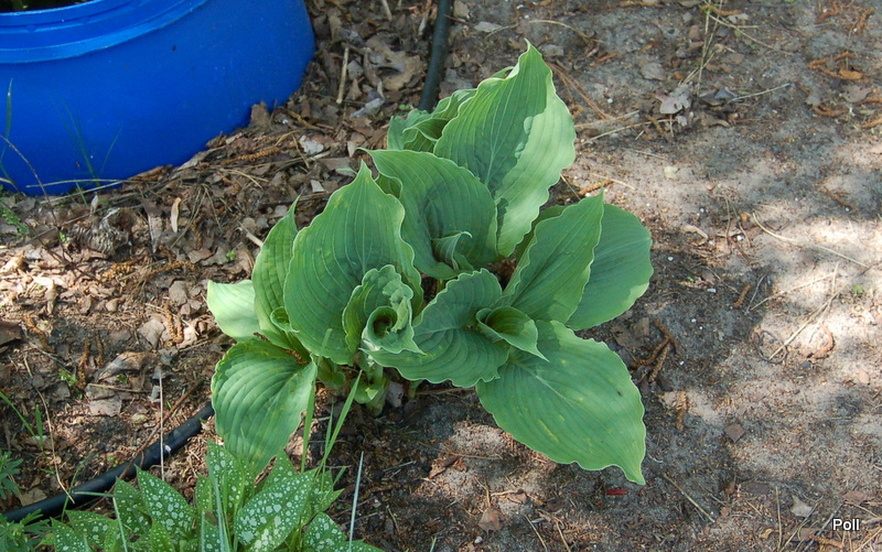 Rozmiar:M/L wysokość 45-55cm Liście: duże, sercowate; niebiesko-szaro-zielone z pofalowanym brzegiem i białym spodem Kwiaty: lawendowe w lipcu/sierpniu Zalecane stanowisko: najlepiej półcień, toleruje poranne słońce Uwagi: