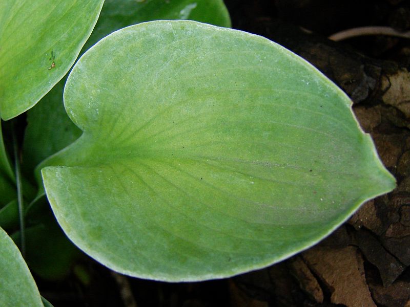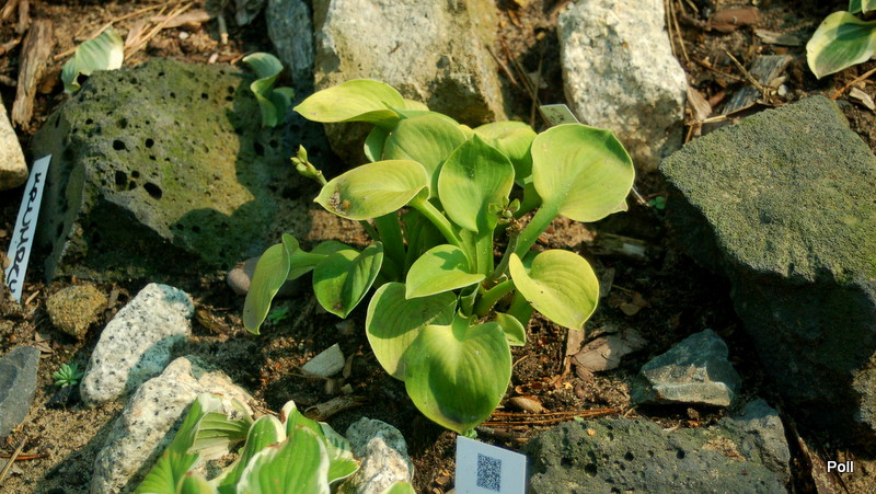 Rozmiar S Liście: okrągłe, lekko pofałdowane, masywne... początkowo szarozielone, w miarę wzrostu i w zależności od ilości światła stają się bardziej żółtawe Kwiaty: bladolawendowe Zalecane stanowisko: półcień/cień