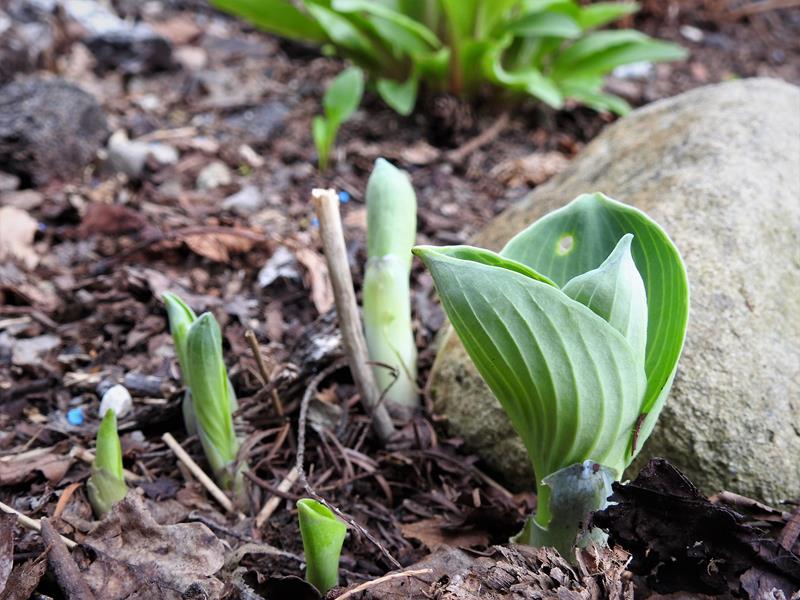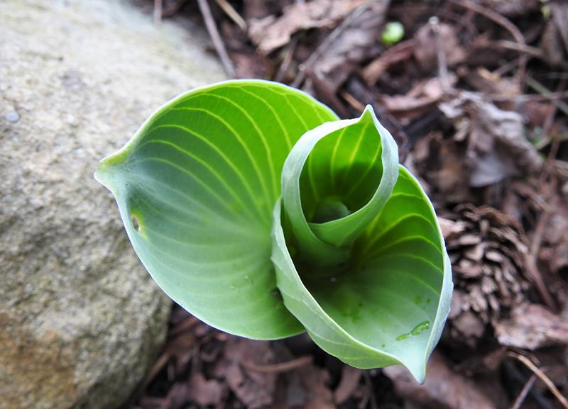 Tegoroczny nabytek- hosta Giantland Sunny Mouse Ears- rośnie obecnie pod sztuczną cieniówką, ale jeszcze 3 tygodnie temu jej stanowisko na skalanej górce było całkowicie słoneczne.