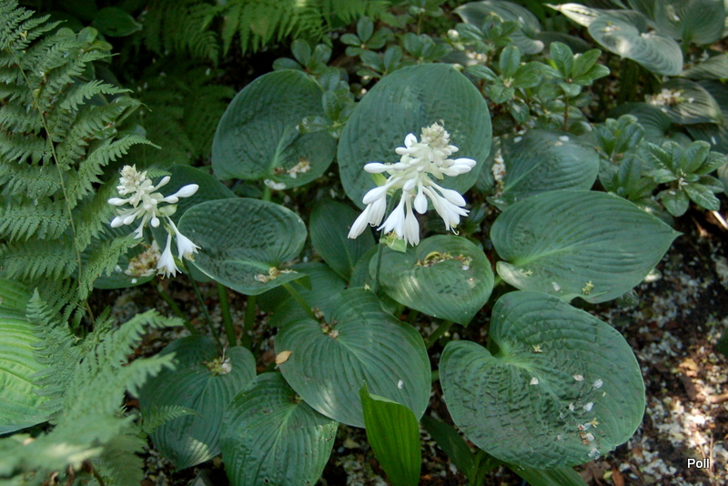 Liście: duże, niemal okrągłe i błyszczące; bardzo mocnej substancji, ciemnozielone z mocnymi burchlami Kwiaty: czysto białe ( także w pąku) , rozwarte (pocz. VII) Zalecane stanowisko: co najmniej półcień