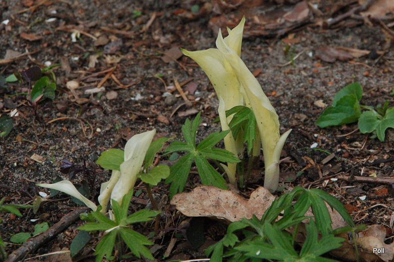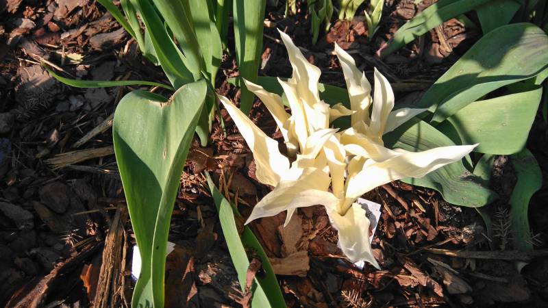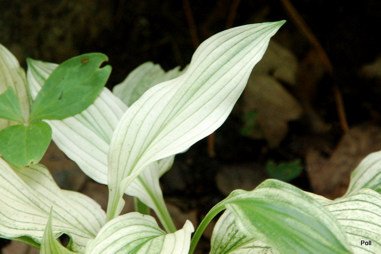 Liście: podłużne, delikatne; wiosną całkowicie białe , z biegiem sezonu zielenieją