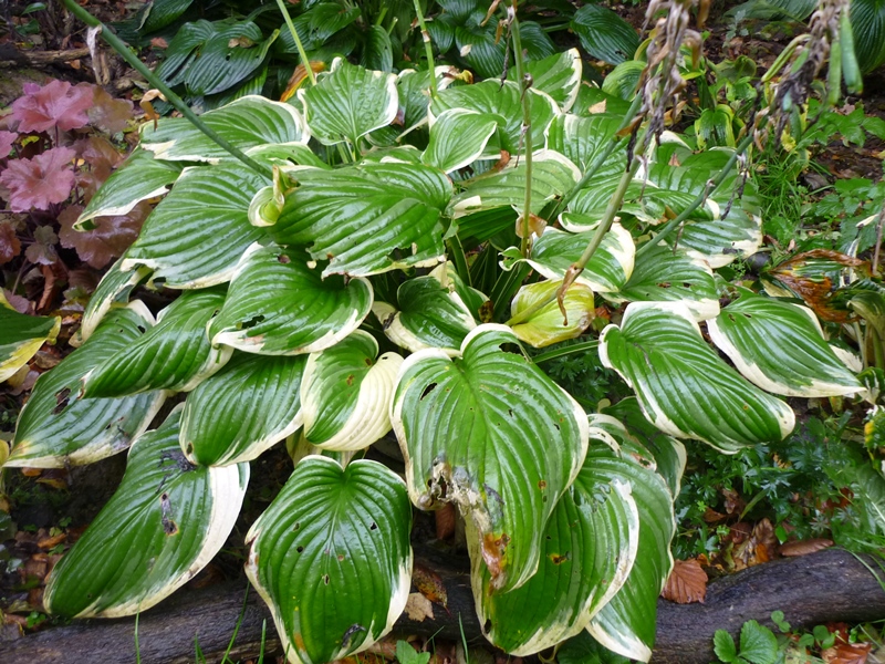 Hosta Fragrant Dream nadal w donicy. I chyba to ją uratowało, bo w zimie obok donicy przemaszerował kret.