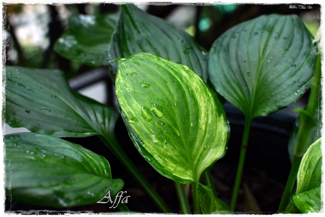 Spody obu liści- błyszczący Aureomaculaty, matowy Albopicty