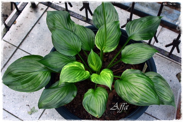 Hosta ventricosa) ma błyszczące obie strony liście, ale szczególnie dobrze widać to na jego backu (spodzie). Odwróć liść i zobacz, czy się błyszczy, czy jest matowy- jeśli matowy, to Albopicta, jesli błyszczący, to Aureomacculata.