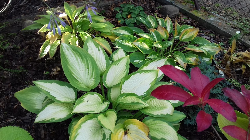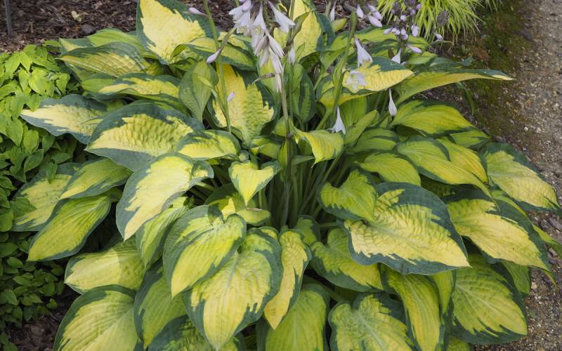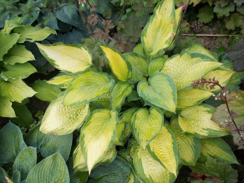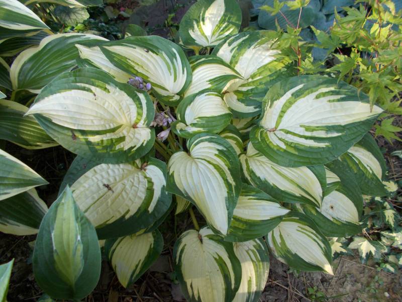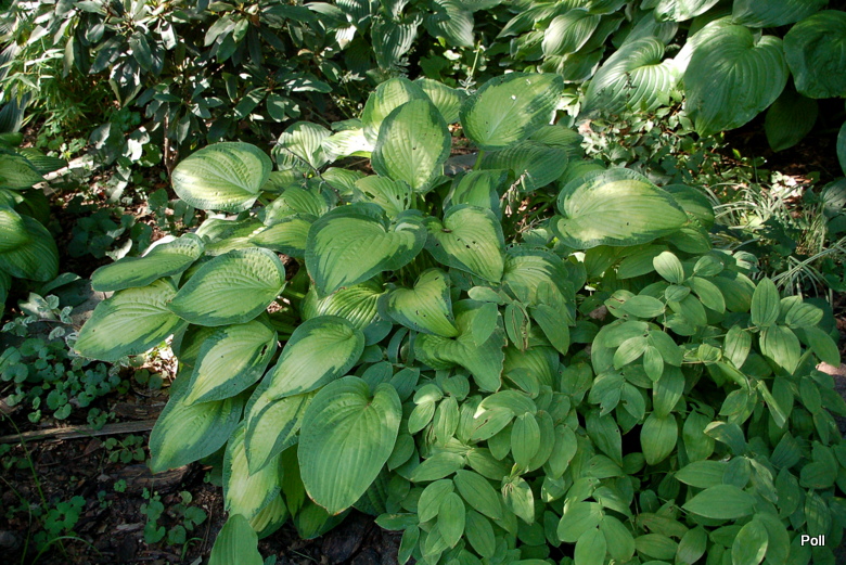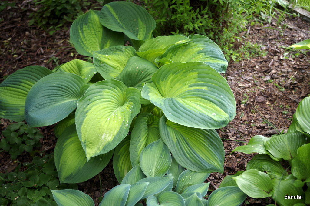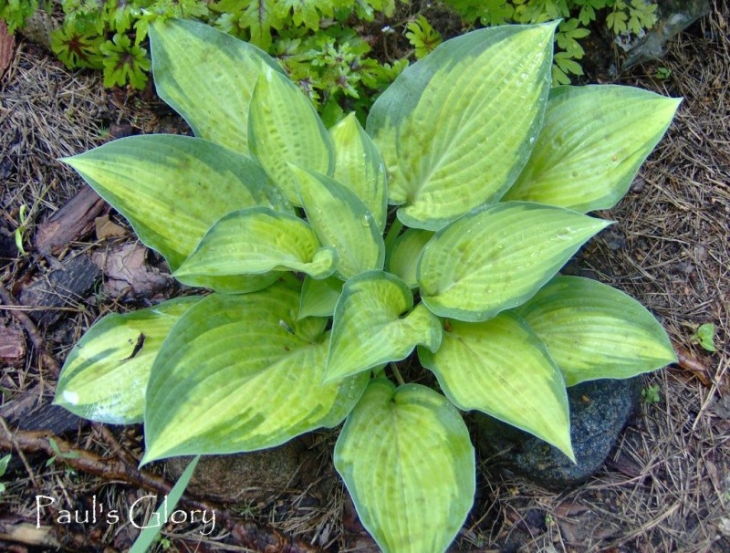 Uwagi: bardzo ładna i intensywnie wybarwiona hosta, gdy rośnie na miejscu o większym zacienieniu kolor centrum liścia