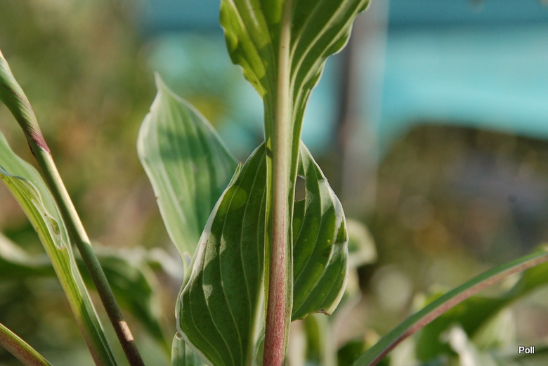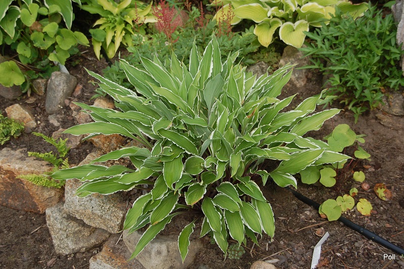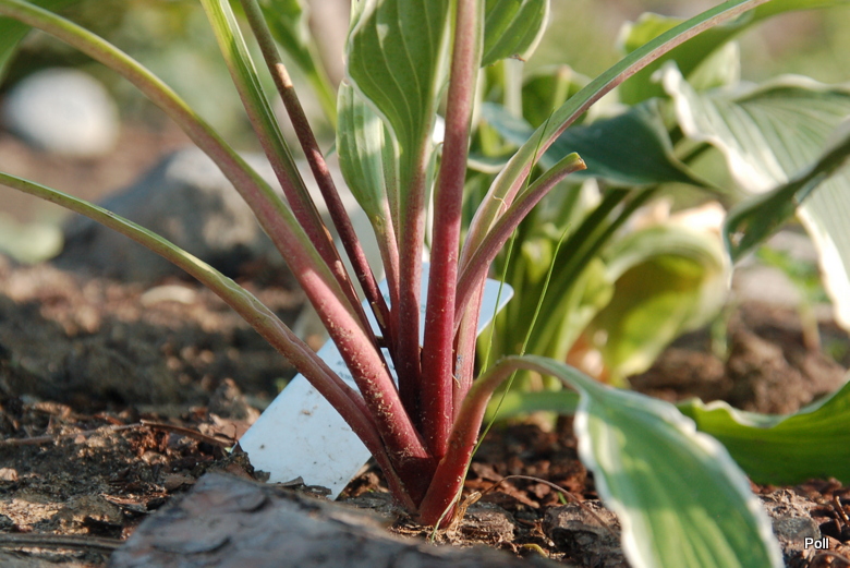 W sumie, prócz tego,że zapowiada się na łądną hostę z falbanką, nie umiem nic powiedzieć. U mnie rośnie drugi sezon a kupiona została w ubiegłym roku, jako jednokłowa sadzonka z in vitro. Spod spódniczki ładnie widać czerwone łodygi .