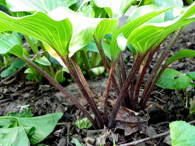 - późne kwitnienie, jeszcze bardziej podnosi atrakcyjność tej hosty, a dodatkową ozdobę stanowią purpurowe torebki nasienne, osadzone na równie ciemnych pędach