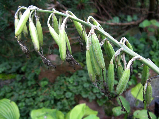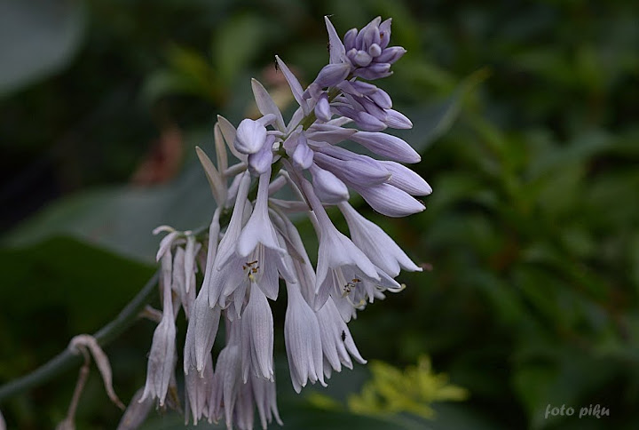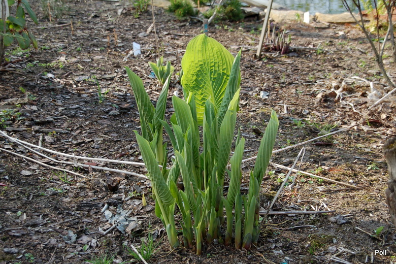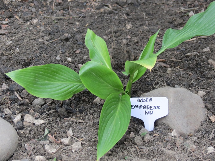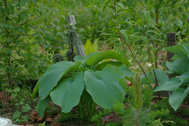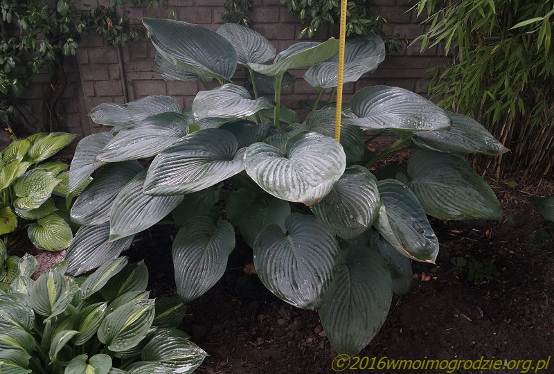 Wyobraźcie sobie w swoim ogrodzie rozłożystą roślinę , która rozsiadając się, jako soliter na cienistym trawniku, zajmuje miejsce o ok. 2,5 metrowej szerokości a jej liście osiagają 70 cm długości. Takiej hosty jeszcze nie było na rynku , więc introdukcja Skaggsów zrobiła prawdziwą furorę , choć nie jest papugowato kolorowa: jej liście mają ciemnozieloną barwę i są lekko błyszczące a od spodu sinawe . Także kwiaty nie są urodziwe - rozwijają się na przełomie VI/VII i są jasnolawendowe osadzone na długich łodygach . Ja wycinałam je , gdy roślina była młoda, aby nie traciła energii na zawiązywanie nasion. Teraz zostawiam nasienniki, licząc , że wśród przypadkowych siewek pojawi się jakaś ciekawa, które chwyci mnie za serce . Wielkim plusem Empress Wu, jest jej duża dynamika wzrostu , o czym pisałam w pierwszym poście/wstępniaku. W tworzeniu nowych kłów (zagęszczaniu) jest nieco wolniejsza - corocznie , przybywa średnio jeden kieł . Duże liście powodują jednak,że od niemal początku, tworzona kępa wydaje się wiele większa i bardziej gęsta, niż faktycznie ma to miejsce.