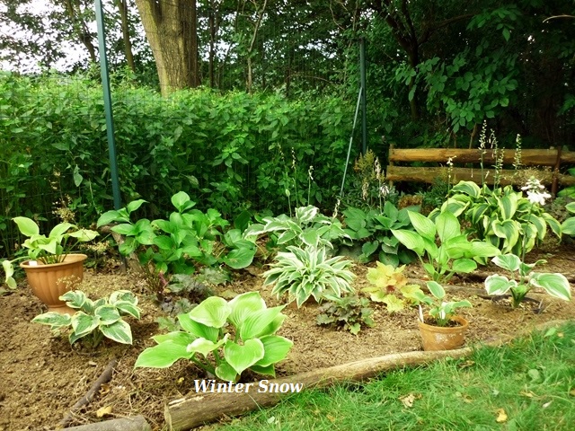 Mateczną rośline podzieliłam 3 lata temu na 3 sadzonki - 2 zostały u mnie .Przedstawiona na zdjęciu, jako sadzonka jednokłowa, dostała takie właśnie sporo podlewane, jasne miejsce w świetlistym cieniu brzóz. Ładnie się wybarwia, choć nie przyrasta zbyt szybko. Affa napisałą w pierwszym poscie,że Winter Snow ma dobre tempo wzrostu...