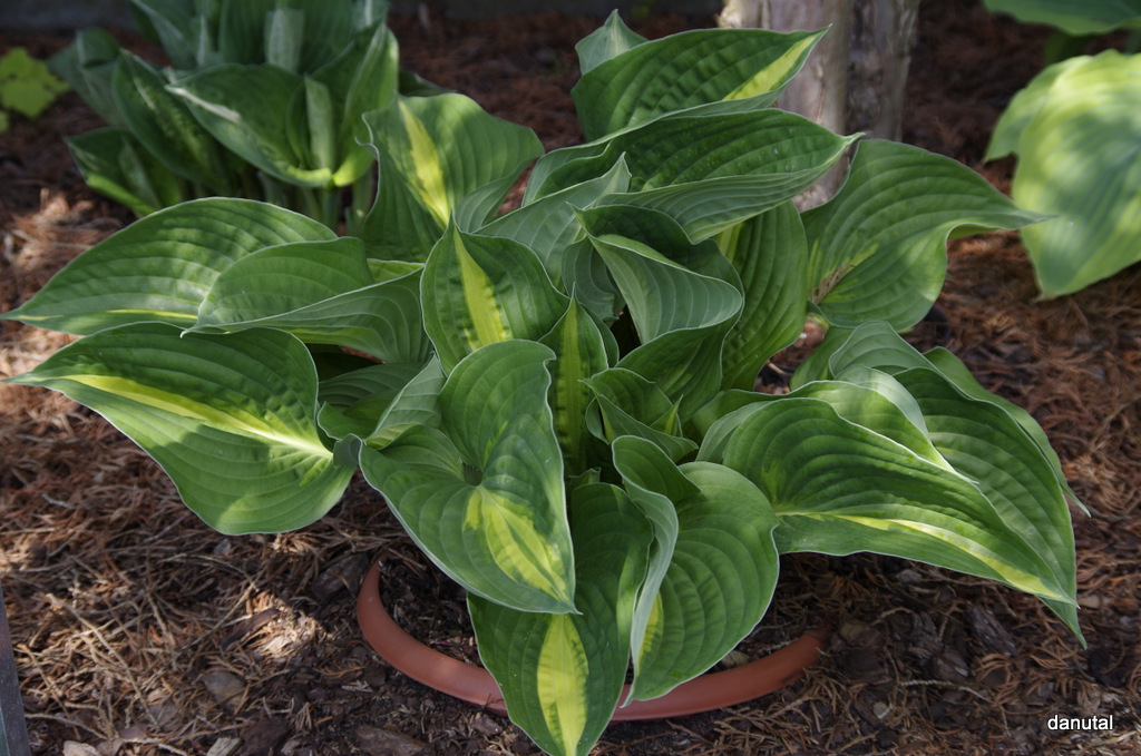 U mnie hosta ta ma skłonność do mutowania (jedna kępa) lub cofania do wyglądu przodków (druga kępa) - szeroki jasny środek przechodzi we wzorki typu streaked lub nawet zanika. Cechy dziedziczą się co roku.