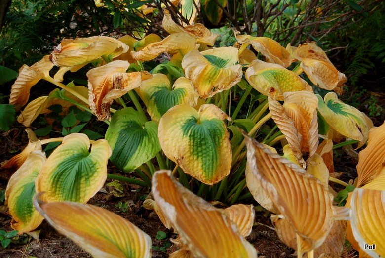 Faktycznie, powoli nabiera cech i faktycznie, potrafi się przypalić. Co prawda, nie jak Frances Williams, ale jednak... Dlatego trzeba jej wybrać dobrze stanowisko: chłodne i wilgotne. Trzeba tez uważać, aby nie rosła za jakimś kwitnącym krzewem, bo wyłapuje wszystkie opadające po przekwitnięciu płatki i potem trudno je usunąć (tak, jak spadź mszyc). Najlepiej ją posadzić za jakąś sporą hostą i nie zaglądać przez 3 lata