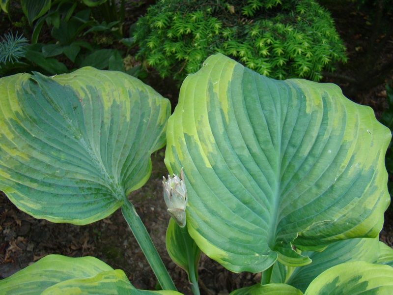 Hosta The King, któr niezmiennie zachwyca mnie swoimi przygaszonymi barwami i przepięknym kształtem pofalowanych liści.