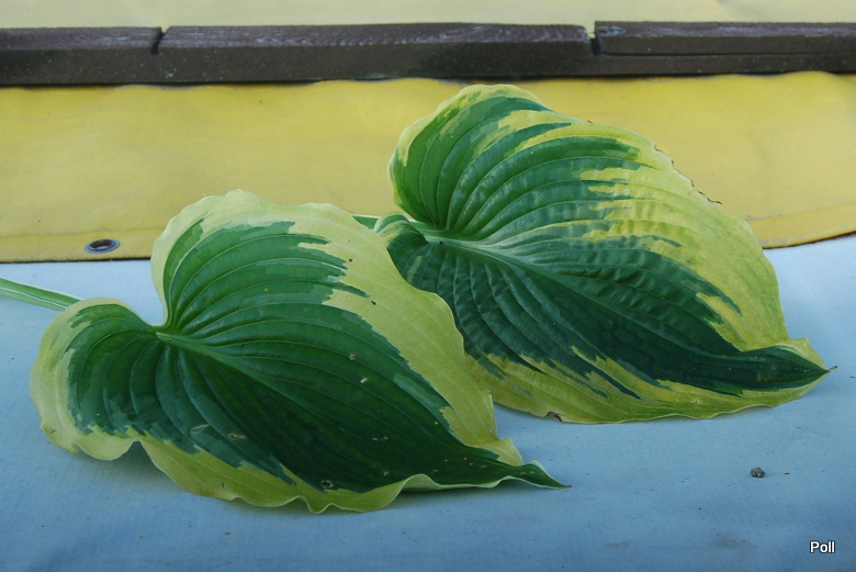 Mireczka pięknie to wytłumaczyła, dokładnie tak jest. :slonko Dodam tylko,ze kolorowe nacieki marginesu The King, wlewają się głębiej w centrum liścia a on sam jest mocniejszy - chciałoby się napisać 'bardziej męski - i ma wyraźne burchle. Zerwałam po jednym liściu z obu host (najbardziej zniszczone :lol: ), podobnej wielkości i zdobiłam kilka fotek: