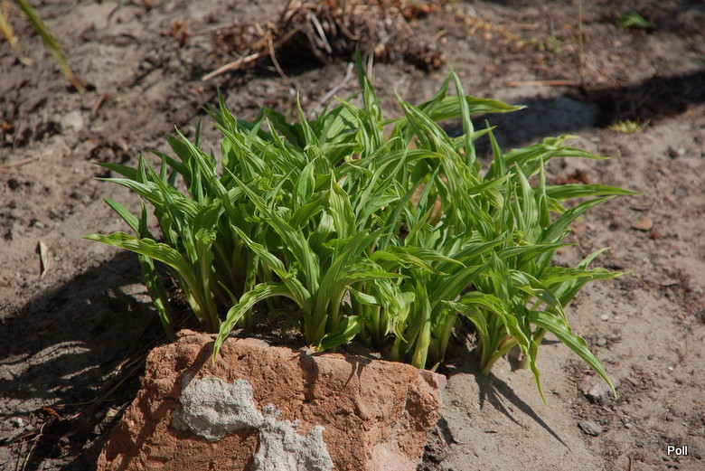 Podzielona w ubiegłym sezonie a pół, trafiła na -niestety- mocno słoneczne stanowisko i jest sporo niższa, niż przed podziałem. Musi poczekać, aż cień urośnie. :lol: