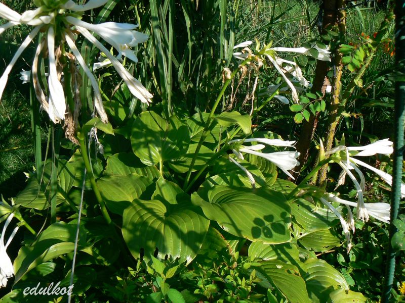 - należy jej bardzo starannie dobrać miejsce - takie, by promienie słoneczne nie paliły zielonych liści (zniesie większe nasłonecznienie, ale liście nie będą miały soczystych barw), ale na tyle jasne, by obficie kwitła, gdyż wygląd (ok.10-12 cm długości) i zapach kwiatów jest niezaprzeczalnie najmocniejszą stroną tej hosty